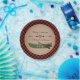 Plaques illustrant un canot et un coeur entre deux flèches. L'Arrière - plan est rouge et noir plaid.