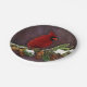 Une belle image d'un cardinal masculin brillamment rouge sur une neige a épousseté la branche de pin complète avec des pinecones. Perfectionnez pour des sentiments de Noël, ou n'importe quelles autres vacances d'hiver !