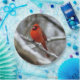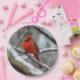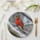 Un cardinal rouge vif ajoute une pop de couleur lors d'un jour de neige morne.