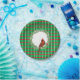 Ce design a un arrière - plan vert avec des lignes rouges et blanches qui forment un motif de carré. Au centre il y a un cercle blanc avec une couronne à feuillage persistant et le cardinal.