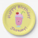 Assiettes En Carton Caricature de crème glacée de fraise mignonne