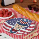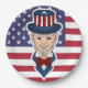 Plaque en papier avec l'illustration de l'oncle Sam avec le drapeau américain comme arrière - plan, 4 juillet dessin patriotique de Maxi Harmony / Radka Kavalcova