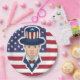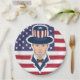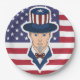 Plaque en papier avec l'illustration de l'oncle Sam avec le drapeau américain comme arrière - plan, 4 juillet dessin patriotique de Maxi Harmony / Radka Kavalcova