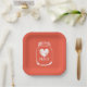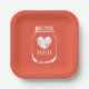 Plaques carrés en papier orange avec monogramme mariage. Couleur personnalisable et personnalisez le nom lettres initiales de mariée et mariée. Élégante typographie dans le rustique style campagnard chic maçon design bocal. Design romantique avec icône vintage coeur. Symbole d'amour patiné défraîchi. Plaques jetables pour mariage, douche nuptiale, fiançailles, anniversaire ou fête de bachelorette. Couleur arrière - plan personnalisable. Parfait pour les mariage de grange en plein air en été autour de Juillet, août, Septembre.