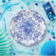 Assiettes En Carton Carreau floral bleu et blanc avec oiseau