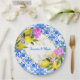 Carreaux bleus Bougainvillea et citron Amalfi Positano style méditerranéen Douche nuptiale personnalisée plaque de papier nom, décoration de réception personnalisée.