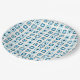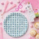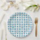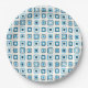 Carrés bleus modernes du milieu du siècle à l'intérieur des carrés fait pour plaisir des assiettes jetables en papier. Ces assiettes peuvent être utilisées pour des fêtes d'adultes ou d'enfants, garçons ou filles. Cette conception est également vendue sur des dessous de verre en papier, des tasses et des serviettes.