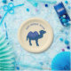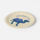 Célébrez les anniversaires et autres événements spéciaux en style avec ces assiettes de fête avec une illustration de style dessin animé d'un chameau bactrien ou d'un chameau avec deux bosses en bleu moyen contre un arrière - plan de couleur sable du désert avec votre propre message personnalisé.