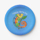 Cette plaque de papier a un lézard de couleur vive de type dessin animé tenant une feuille verte dans les tons vibrants de vert, jaune, orange et bleu sur arrière - plan bleu profond. Customisez le texte de Joyeux Anniversaire avec les modèles.
