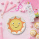 Un visage de soleil en or jaune souriant pour un anniversaire amusant pour enfants ou une fête de jardin extérieur avec des pois blancs sur une tige d'or antique, arrière - plan blanc cassé, ou changer l'arrière - plan à n'importe quelle couleur lorsque vous "cliquez pour customiser plus loin".