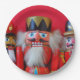 Trois noix-crackers colorés sur un arrière - plan rouge, dessous de verre assorti et serviette en papier également disponible