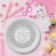 Plaque commémorative de fête de fête d'anniversaire avec le nom de la personne, et la date de leur anniversaire. Une plaque de fête en papier pour quelqu'un qui a 65 ans.