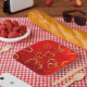 Célébrez l'amour avec ces coeurs rouges carrés taillés avec des plaques en papier or. Voir les aliments cuits au four, les bonbons et la vaisselle à thème correspondants!