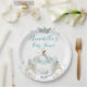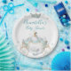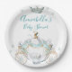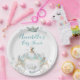 Cette assiette féerique et enchanteresse présente un thème de conte de Cendrillon. La partie supérieure présente l'image d'une couronne princesse design turquoise et dorée avec des étoiles assorties autour. La partie inférieure est équipée d'un chariot citrouille Cendrillon. Un exemple de nom et de type d'événement sont imprimés dans le centre dans une police turquoise élégante. C'est parfait pour un baby shower, une douche nuptiale, une fête d'anniversaire, un sweet sixteen ou une autre fête de conte de fées.