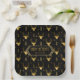 Cette plaque en papier présente un motif tendance de silhouettes de tête de cerf avec des bois incurvés, des flèches stylisées et de minuscules flocons de neige avec un effet texturé dans les nuances d'or sur un arrière - plan noir Texte "Happy Holidays" en option et un étiquette ont été fournis pour ajouter votre nom et/ou un autre texte. Faites une recherche ID861 à ID864 pour voir d'autres options de couleurs et d'autres produits dans cet ensemble moderne de design de Noël.
