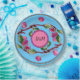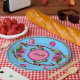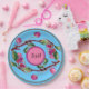 Assiettes En Carton Cerises Fruit rose sur Turquoise avec Pap Initiale