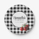 Assiettes en papier Cerises Vintage noir blanc gingham.