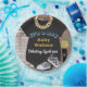 Il était tout un rêveur… Donnez- un coup de piedle vieux baby shower de régression de hip hop de l'école with1990 ! C'est un prince de hip hop de Lil ! Combinaison noire mignonne avec la chaîne d'or de mouche, les baskets checkered avec un bleu et le microphone d'or sur des mots d'arrière - plan et de bleu de brique de graffiti.