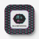 C'est une...Plaques de révélation de genre avec couleur Arrière - plan noir avec points d'interrogation rose et bleu. Ajoutez votre propre texte en bas ! ©2022 Miss Sassy Party Designs