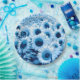 Plaques de papier dans une impression numérique basée sur une photo de tournesols - nuances de bleu profond indigo à bleu ciel pâle, accentué de blanc