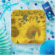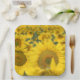 Plaques en papier avec une belle photo d'un champ de tournesols jaunes.