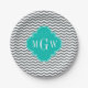 Assiettes En Carton Charbon fin Chevron Turquoise Quatrefoil 3 Monogra