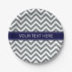 Assiettes En Carton Charcoal Grey Lg Chevron Navy Blue Nom Monogramme