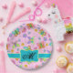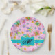 Vous aimerez vous divertir avec ces plaques en papier monogramme avec un motif d'art papillon rose féminin et romantique. De beaux papillons tourbillonnants volent vertigineusement sur ces plaques de papier design et personnalisées. Idéal pour les fêtes ou pour tenir un gâteau. Vous pouvez changer le monogramme en un nom ou d'autres mots sur l'emblème et la bande bleu turquoise turquoise. Les belles couleurs de lavande, rose fushia, bleu turquoise, orange et jaune créent une belle palette de couleurs sur le joli arrière - plan rose. Les éléments de conception d'icônes à motifs comprennent également des fleurs jaunes, turquoise, lavande et rose fuchsia et des cercles fantaisistes. Customisez pour vous-même ou pour un cadeau. Les papillons sont toujours populaires et bonne chance ainsi que tendance, contemporain et élégant avec grand charme. Entièrement personnalisable. Coordonner avec d'autres produits de la même couleur ou d'autres arrière - plans de couleur dans ce magasin.