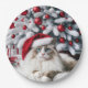 Assiettes En Carton Chat à poupée de Noël dans un chapeau de Père Noël