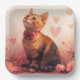 Assiettes En Carton Chat abyssinien avec Rose - Saint Valentin