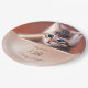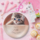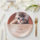 La partie supérieure comprend un mignon chat bébé réaliste photo avec les yeux bleus. Créé avec IA. La partie inférieure comporte un champ de texte en or rose avec un texte d'anniversaire personnalisé. Élégantes assiettes en papier d'anniversaire mignonnes.
