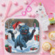 Un gracieux chat bleu russe parcourt élégamment la scène hivernale enneigée, portant un casquette de Noël rouge festif. Ce design charmant met en valeur le pelage bleu-gris de la race, les yeux verts saisissants et la douceur de la personnalité tout en captant la chaleur et la joie de la saison des fêtes. Un délicieux moment d'hiver plein de joie festive.