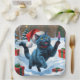 Assiettes En Carton Chat bleu russe à la neige avec Casquette de Noël