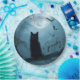 Ce design de style gothique présente un mystérieux chat noir aux yeux brillants, perché sous une lune brillante tandis que des chauves-souris entourent le ciel nocturne brumeux. Les tons bleus et les branches ombragées créent un look soyeux et atmosphérique qui mêle élégance sombre et charme d'Halloween. Parfait pour l'accueil des rassemblements d'Halloween ou l'ajout d'une touche de beauté hantante à votre table de fête.