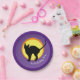 PLAQUE DE PAPIER : Chat noir avec la lune brillante - plaques de papier pour les anniversaires, fêtes, camping avec enfants, barbecue de jardin - customiser facilement le texte sur l'assiette.