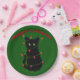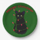 Assiettes En Carton chat noir | Meowy Christmas | lumières scintillant