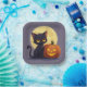 Assiettes En Carton Chat noir mignon avec Citrouille sculpté brillant