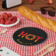 Chaud avec la lettre O faite d'un cercle de flamme avec des piments.