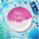 Joyeuses plaques de papier d'anniversaire. Joyeux anniversaire écrit avec une police manuscrite tendance. Un design artistique créatif utilisant un éclat de peinture aquarelle rose vif.