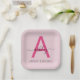 Assiettes En Carton Chaud rose moderne Script Girl Monogramme Nom