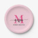 Assiettes En Carton Chaud rose moderne Script Girl Monogramme Nom