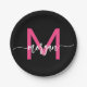 Assiettes En Carton Chaud rose noir moderne Script Girl Monogramme Nom