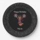 Plaques en papier "Joyeux anniversaire" Black Sparkle pour la fête parfaite ! Personnalisez cette assiette avec le nom de votre pom-pom girl !