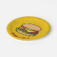 Illustration de dessin animé Cheeseburger. Les aliments indésirables entourent les icônes jaune motif arrière - plan. Texte personnalisé.