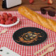 Célébrez l'Halloween avec ces assiettes noires et oranges avec un personnage de tête citrouille effrayant.