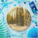 Plaques en papier avec une belle photo nature. Un chemin hivernal isolé avec de grands pins enneigés. Une teinte dorée créera une sensation magique à cette photo.