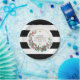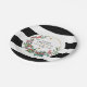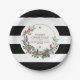 Motif moderne à rayures noir et blanc avec une illustration d'aquarelles en couronne de Noël avec baies rouges, sainte de Noël, pinecones avec cardinaux rouges. Cercle blanc centré avec-Joyeux Noël et votre nom de famille.