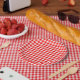 Assiettes En Carton Chèques En vichy taille moyenne rouge et blanche