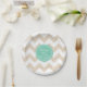 Plaque papier personnalisable 75e anniversaire avec chevron et couleur personnalisable en marque ronde. Vous pouvez facilement changer la couleur arrière - plan (ici couleur de menthe d'aqua) et la couleur du texte (nom), la police, la taille et la position en cliquant sur le bouton personnaliser. Correspondance Chevron Papier d'anniversaire serviettes, anniversaire enregistrer la date, invitation et livre d'or. N'oubliez pas toute la collection.