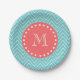 Assiettes En Carton Chevron turquoise et de corail avec le monogramme